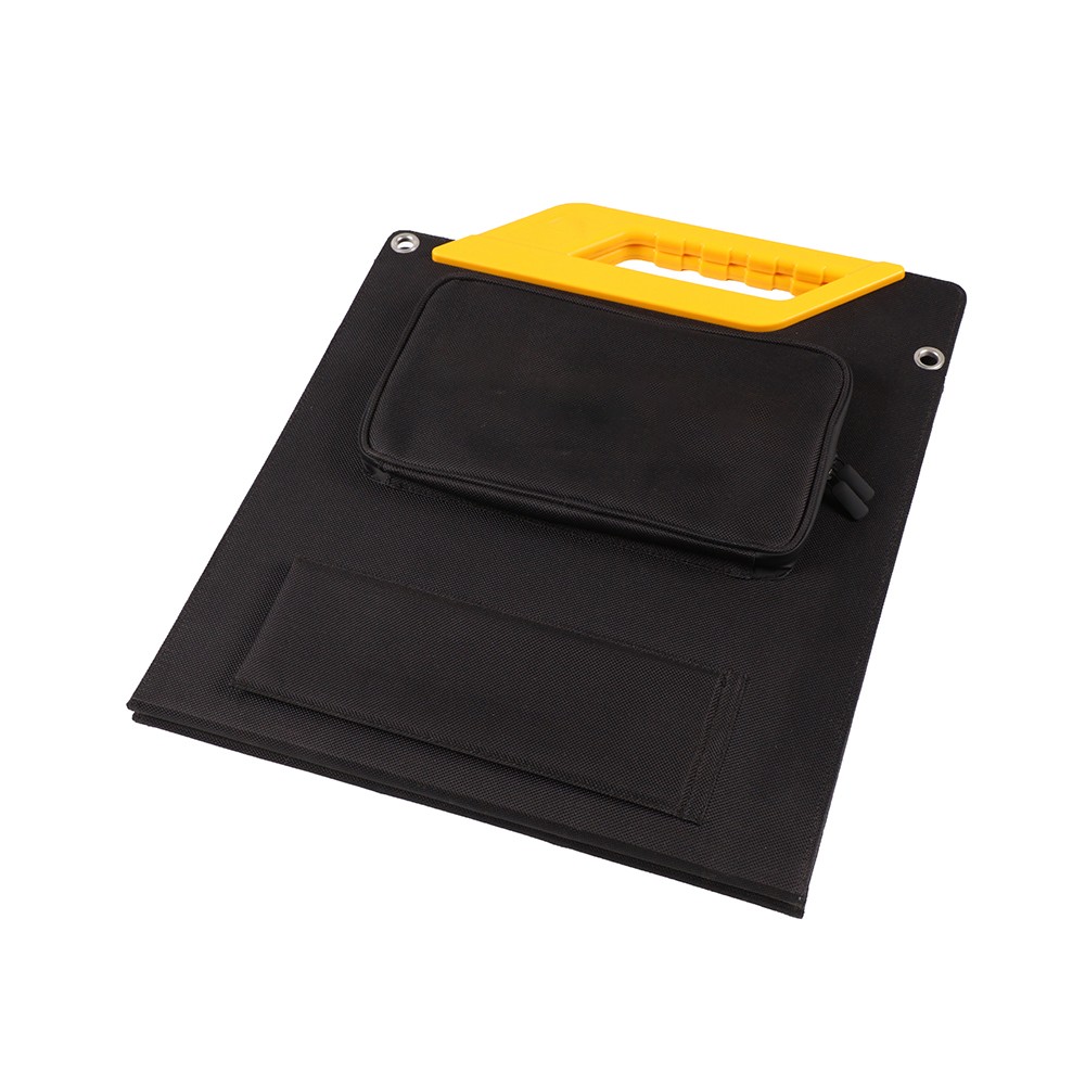 ແຜງພະລັງງານແສງອາທິດແບບພົກພານີ້, ຜະລິດຈາກກະເປົ໋າທີ່ເຄືອບດ້ວຍ PET, ມີຄວາມທົນທານພຽງພໍ ແລະ ກັນນ້ຳ IP65 ແລະ ເໝາະສຳລັບກິດຈະກຳກາງແຈ້ງ.